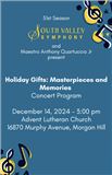 Dear Friends of South Valley Symphony, We are delighted to welcome you to our Holiday Gifts concert, a special celebration of the season that promises to fill your hearts with joy and warmth. We are thrilled to share it with you. As December envelops us, we invite you to join us on a musical journey that captures the spirit of winter and the holidays. Our talented performers have prepared an enchanting program featuring a blend of timeless classics and contemporary favorites that are sure to resonate with all ages. Whether you are a longtime supporter or a first-time attendee, we hope you find this experience uplifting and memorable. Thank you for being part of our musical community. Your presence means the world to us, and we look forward to celebrating the beauty of winter and the power of music together. Warmest wishes,